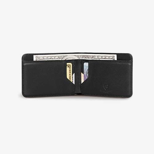 • • Almacenamiento: Tiene una ranura exterior para almacenar tarjetas y cuatro ranuras más en el interior y un compartimento para billetes adicional a las ranuras para las tarjetas. Lo delgado de su estructura hace que tus bolsillos no se vean abultados.